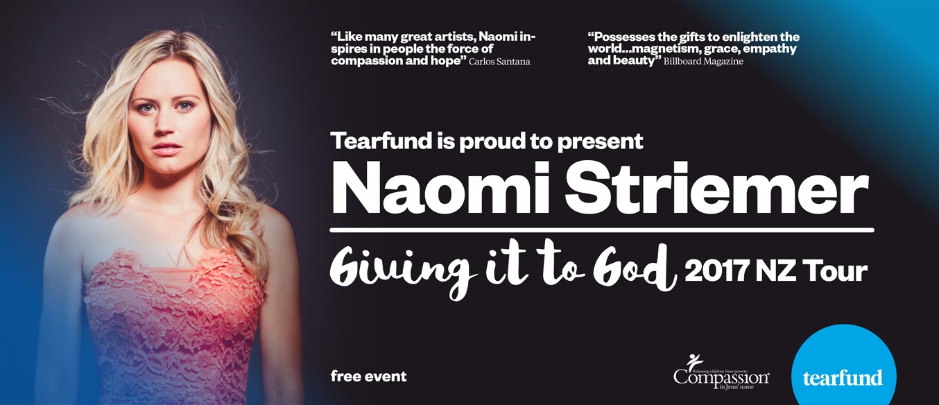 Naomi Striemer went from milking goats and gathering eggs in Nova Scotia to signing a multimillion dollar record deal with Sony Records at 18 years old. She went on to have a #1 single with guitar legend Carlos Santana and was hailed 'The Commanding Diva of the Decade' by Billboard magazine for her 'melodic debut of the year'. After a dream from the Holy Spirit, Naomi walked away from her pop career, her contract, her 'once-in-a-lifetime' opportunity to see what Jesus had in store for her, and God has been using her ever since.Join us as she shares her music, her story and her passion for the work of Tearfund through Compassion to set children free from poverty in Jesus' name.